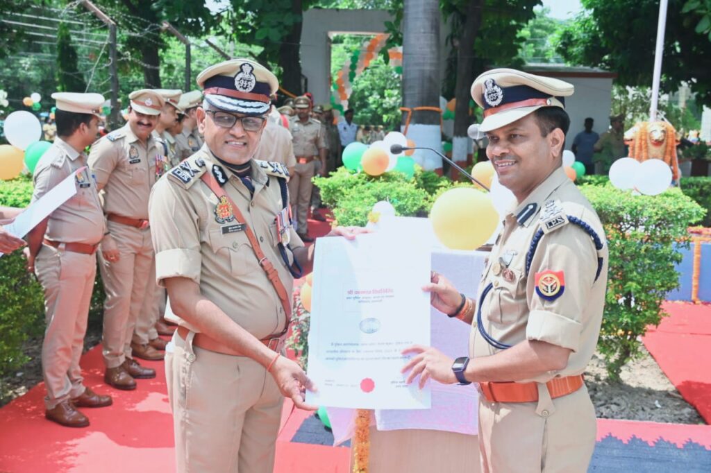 वाराणसी: अपर पुलिस आयुक्त कानून एवं व्यवस्था डा0 एस चन्नप्पा द्वारा 77 वें स्ववंत्रता दिवस के अवसर पर यातायात पुलिस लाइन परिसर कमिश्नरेट वाराणसी पर ध्वजारोहण किया गया तथा वहां उपस्थित समस्त अधिकारी/कर्मचारीगण को सत्यनिष्ठा एवं ईमानदारी से अपने कर्तव्यों को निर्वहन करने हेतु प्रेरित करते हुये शपथ दिलायी एवं स्ववंत्रता दिवस की बधाई दी गयी।