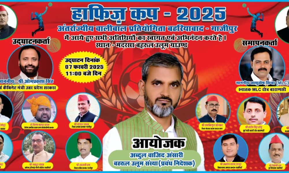 गाजीपुर। बहरियाबाद स्थित मदरसा बहरुल उलूम के मैदान में हाफिज कप 2025 का अंतरराज्यीय वॉलीबॉल प्रतियोगिता 7 फरवरी 2025 को 11:00 बजे से शुरू होगा। इस प्रतियोगिता...