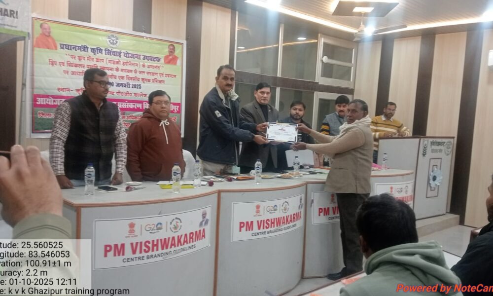 गाजीपुर (जयदेश)। प्रधानमंत्री कृषि सिंचाई योजना (पर ड्राप मोर क्राप-माइक्रोइरिगेशन) के अंतर्गत कृषि विज्ञान केन्द्र, पी०जी० कॉलेज, गाजीपुर में एक दिवसीय प्रशिक्षण कार्यक्रम का आयोजन किया...