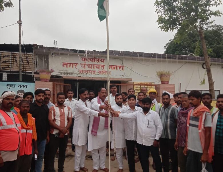 नगरा (बलिया)। नगर पंचायत नगरा के कार्यालय पर नगर अध्यक्ष प्रतिनिधि उमाशंकर राम ने ध्वजारोहण किया। नगर पंचायत के कर्मचारियों को आगामी दीपावली और छठ पर्व...
