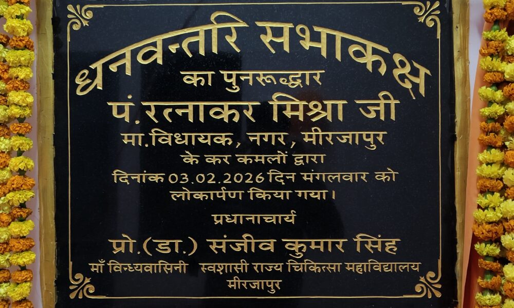 मीरजापुर। माँ विंध्यवासिनी स्वशासी राज्य चिकित्सा महाविद्यालय से संबद्ध मंडलीय जिला चिकित्सालय के द्वितीय तल पर नव निर्मित ‘धनवंतरि सभा कक्ष’ का उद्घाटन नगर विधायक रत्नाकर...