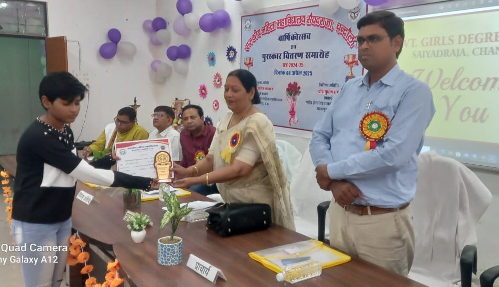 सैयदराजा (चंदौली)। आदर्श नगर पंचायत अंतर्गत राजकीय महिला महाविद्यालय, सैयदराजा में भव्य तृतीय वार्षिकोत्सव एवं पुरस्कार वितरण समारोह का आयोजन किया गया। कार्यक्रम की अध्यक्षता महाविद्यालय...