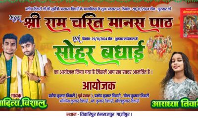 जन्मदिन कार्यक्रम में शामिल होंगे हजारों लोग गाजीपुर । जनपद के तिवारिपुर हंसराजपुर निवासी प्रवीण कुमार तिवारी (पूर्व प्रधान) की सुपौत्री आराध्या तिवारी (सुपुत्री अभिषेक कुमार...