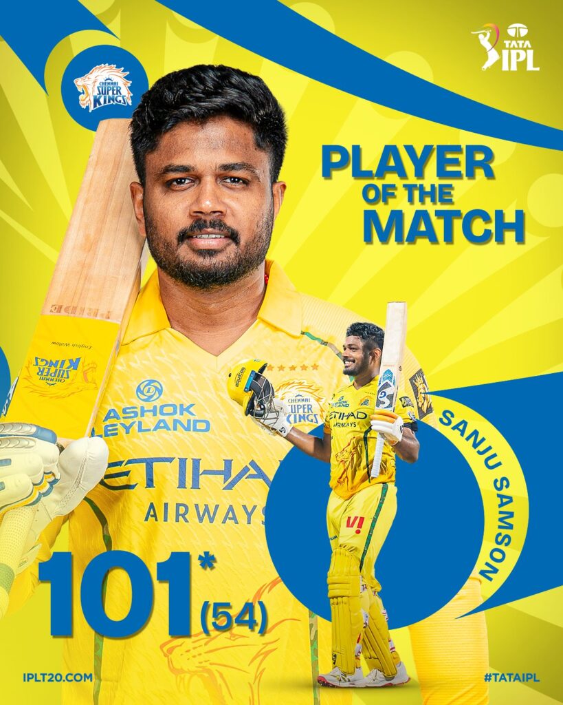 CSK vs MI : सैमसन के शतक से चमकी चेन्नई, मुंबई 104 पर ऑलआउट