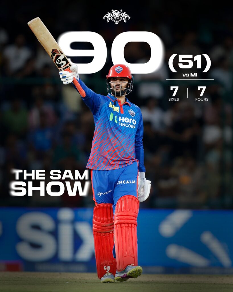 दिल्ली कैपिटल्स ने 18.1 ओवर में चार विकेट खोकर 164 रन बनाते हुए मुकाबला अपने नाम किया। समीर रिज्वी ने 51 गेंदों में 90 रन की तेजतर्रार पारी खेली, जिसमें उन्होंने सात चौके और सात छक्के जड़े। उनके अलावा पाथुम निसांका ने भी 44 रन का महत्वपूर्ण योगदान दिया।