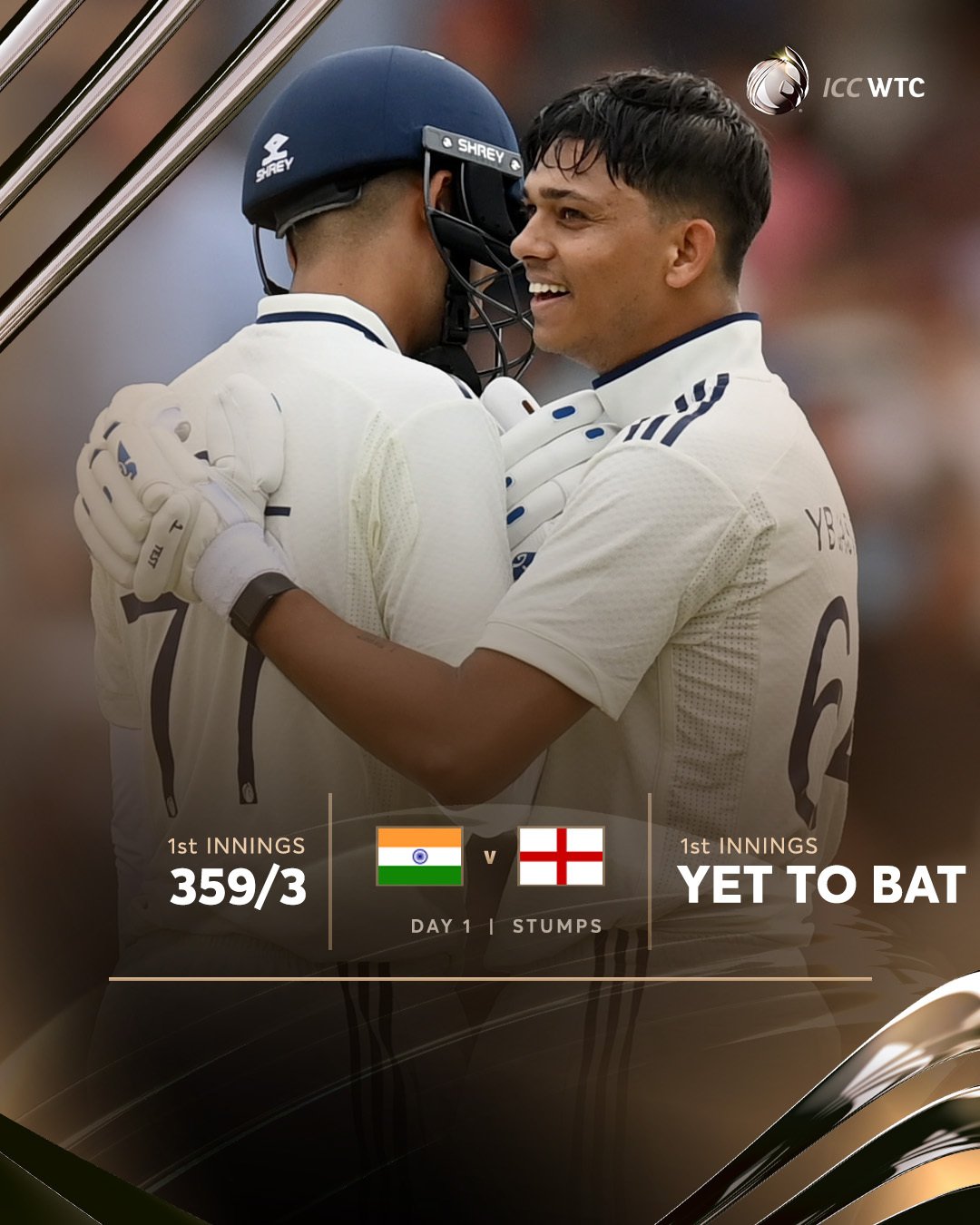 पहले दिन का खेल खत्म होने तक भारत ने 3 विकेट के नुकसान पर 359 रन बना लिए हैं। कप्तान शुभमन गिल 127 रन और उपकप्तान ऋषभ पंत 65 रन बनाकर नाबाद लौटे। दोनों के बीच 138 रनों की नाबाद साझेदारी हो चुकी है।