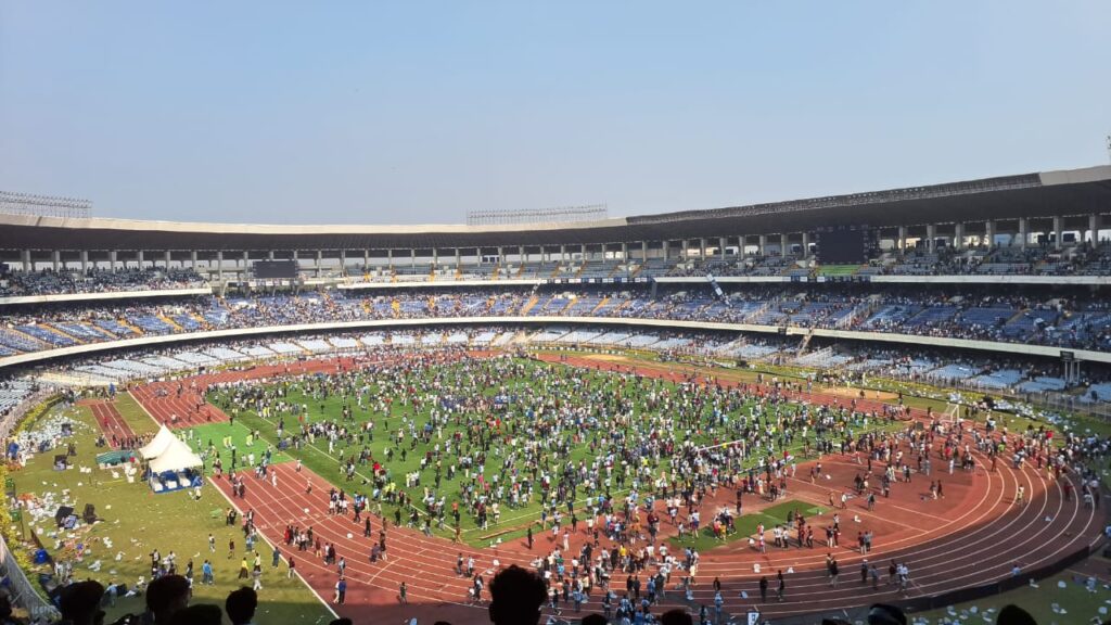 कोलकाता। साल्टलेक स्टेडियम में शनिवार को अर्जेंटीना के दिग्गज फुटबॉलर लियोन मेसी के सम्मान में आयोजित कार्यक्रम के दौरान भारी अव्यवस्था और हंगामा देखने को मिला। मेसी को देखने के लिए उमड़े हजारों प्रशंसक तब आक्रोशित हो गए, जब उन्हें अपने पसंदीदा खिलाड़ी की एक झलक भी नसीब नहीं हुई। हालात बिगड़ने के बाद पुलिस ने कार्रवाई करते हुए कार्यक्रम के मुख्य आयोजक सतद्रु दत्ता को गिरफ्तार कर लिया है और उनके विरुद्ध एफआईआर दर्ज की गई है।