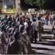 भीड़ का थान पर उग्र प्रदर्शन, पथवार उत्तर प्रदेश के गाजियाबाद के डासना मंदिर के महंत यति नरसिंहानंद द्वारा पैगंबर मोहम्मद पर की गई विवादित टिप्पणी...