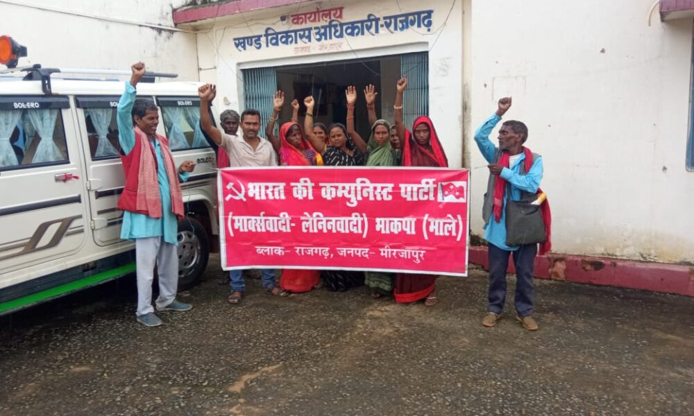 मिर्जापुर। राजगढ़ विकासखंड कार्यालय परिसर में शुक्रवार दोपहर बाद दर्जनों की संख्या में पहुंचे भाकपा माले कार्यकर्ताओं ने राष्ट्रपति को संबोधित नौ सुत्रीय मांग पत्र खंड...