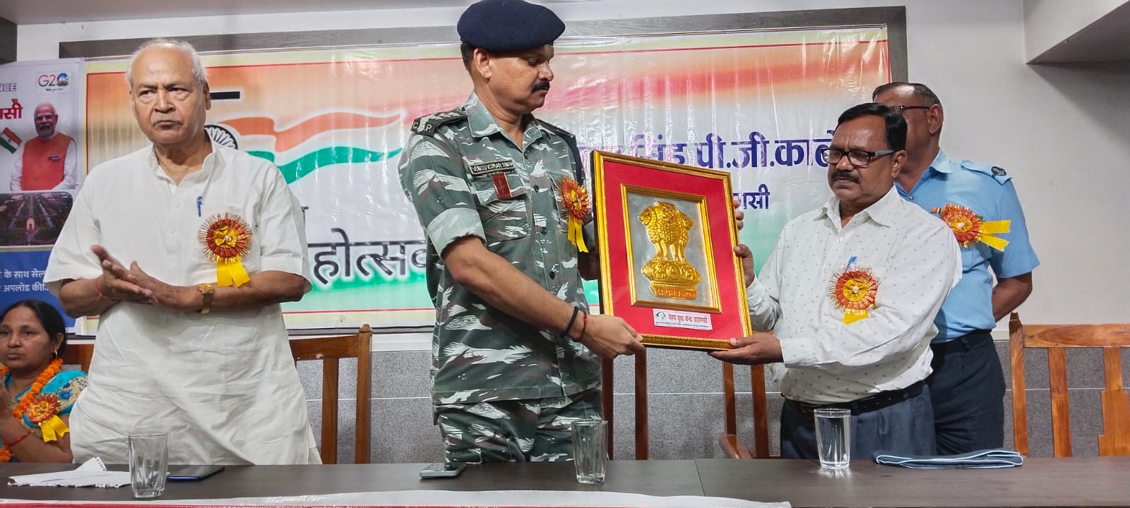 वीर शहीदों को श्रद्धांजलि देते हुए उनकी पत्नियों को सम्मानित किया गया विभिन्न स्थलों से लाई गई मिट्टी को हाथ में लेकर पांच प्रण की शपथ...