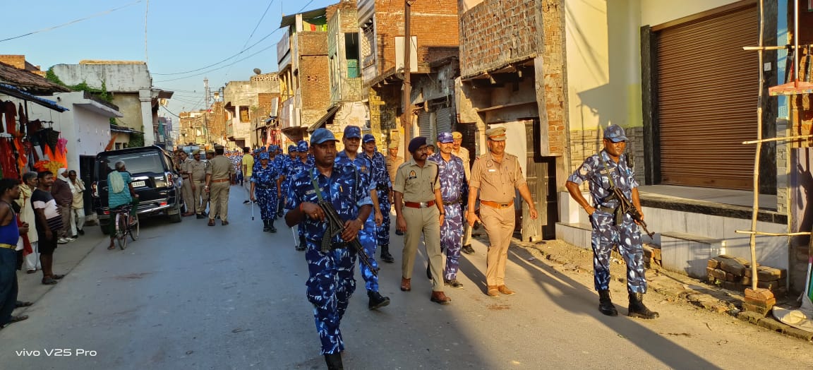 वाराणसी। अपर पुलिस उपायुक्त गोमती जोन व प्र0नि0 बड़ागांव द्वारा मय दंगा नियंत्रण उपकरणों सहित स्थानीय पुलिस फोर्स व पैरामिलिट्री फोर्स (रैपिड एक्शन फोर्स) के साथ...