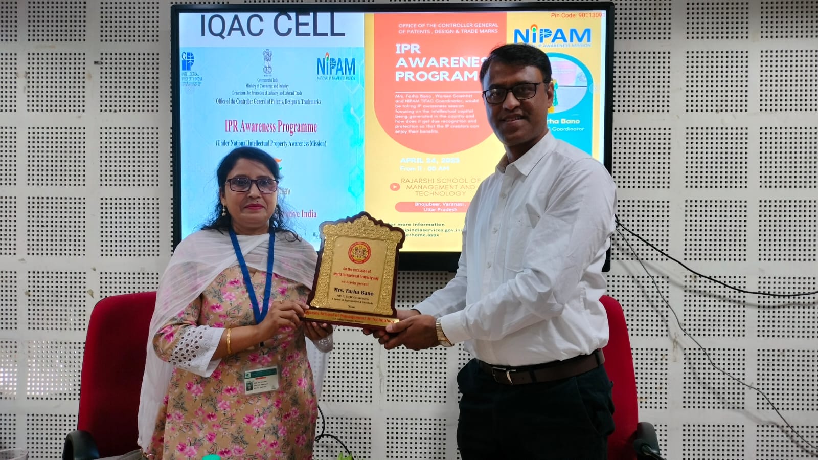 वाराणसी: यूपी कॉलेज परिसर स्थित राजर्षि स्कूल ऑफ मैनेजमेंट एंड टेक्नोलॉजी में “बौद्धिक सम्पदा” पर आयोजित अतिथि व्याख्यान की मुख्य अतिथि फरहा बानो, संयोजक-निपम टिफैक, ने...