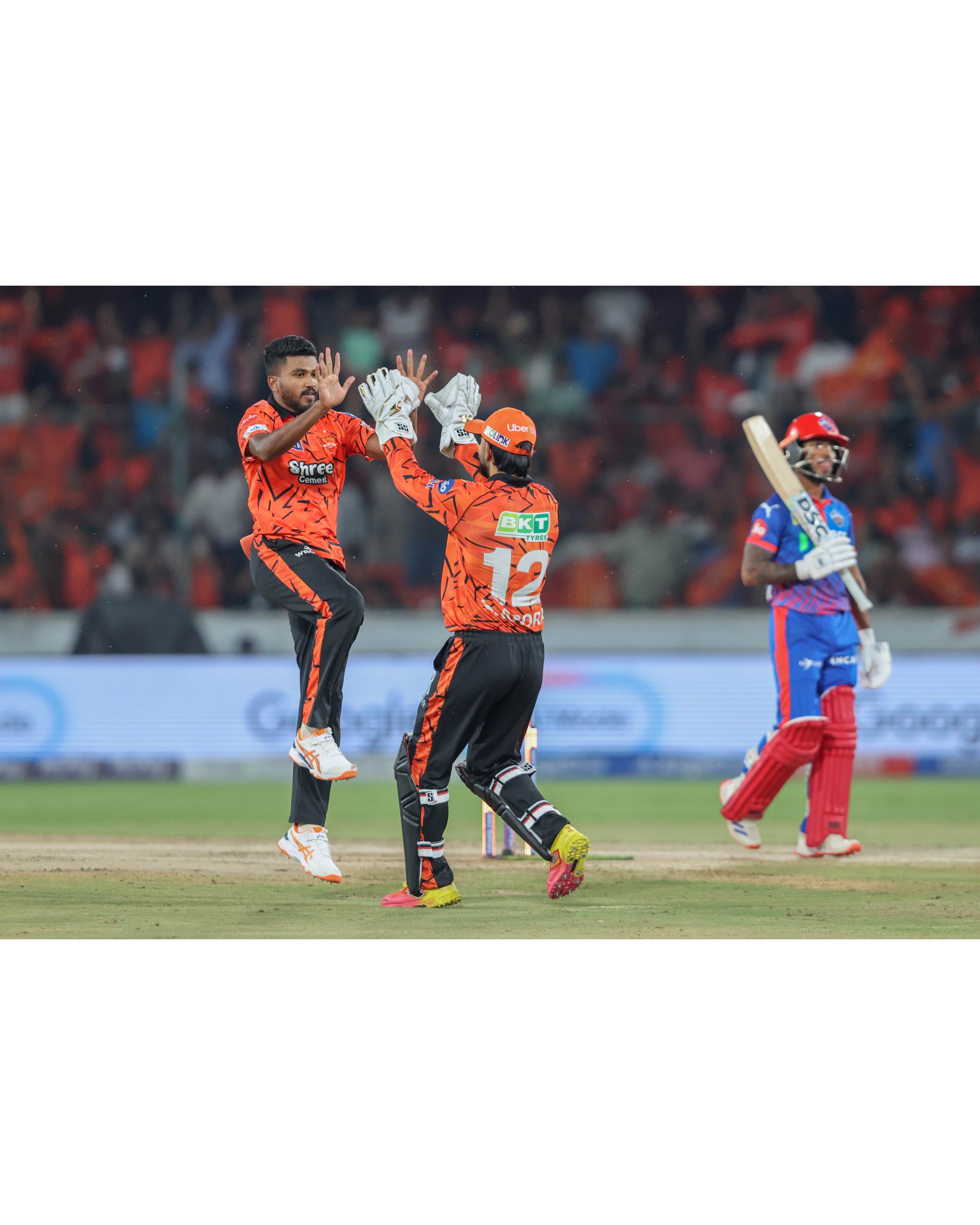 लक्ष्य का पीछा करते हुए दिल्ली (Delhi Capitals) की ओर से नीतीश राणा ने 30 गेंदों में 57 रन बनाए। केएल राहुल ने 23 गेंदों पर 37, समीर रिजवी ने 28 गेंदों में 41 और ट्रिस्टन स्टब्स ने 16 गेंदों में 27 रन का योगदान दिया। आशुतोष शर्मा 10 गेंदों में 14 रन बनाकर आउट हुए, जबकि पथुम निसांका 8 और कप्तान अक्षर पटेल 2 रन ही बना सके। हैदराबाद की ओर से ईशान मलिंगा ने चार विकेट लिए, जबकि हर्ष दुबे ने तीन सफलता हासिल की। दिलशान मदुशंका और साकिब हुसैन को एक-एक विकेट मिला।