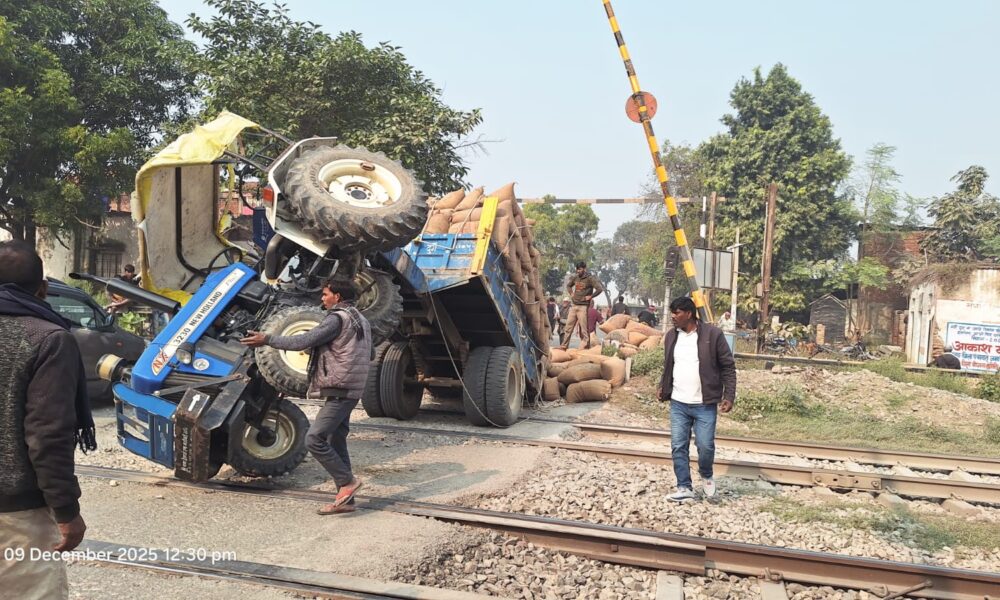 जमानिया (गाजीपुर)। जिले के जमानिया बाईपास करजहीं रेलवे क्रॉसिंग पर मंगलवार की दोपहर धान से भरा एक ओवरलोड ट्रैक्टर अचानक ट्रैक के बीच पलट गया, जिससे...