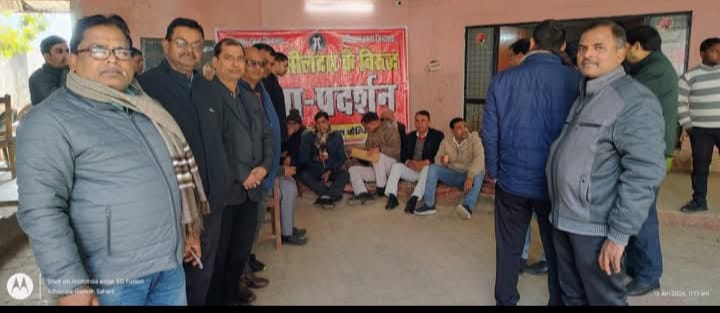 रजिस्ट्री बैनामा पूर्ण बाधित, सादा पेपर तक नही मिला कैम्पियरगंज (गोरखपुर)। बार एसोसिएशन द्वारा अध्यक्ष सुनील मिश्र व संजय साहनी की अगुवाई में तहसीलदार के स्थांतरण...