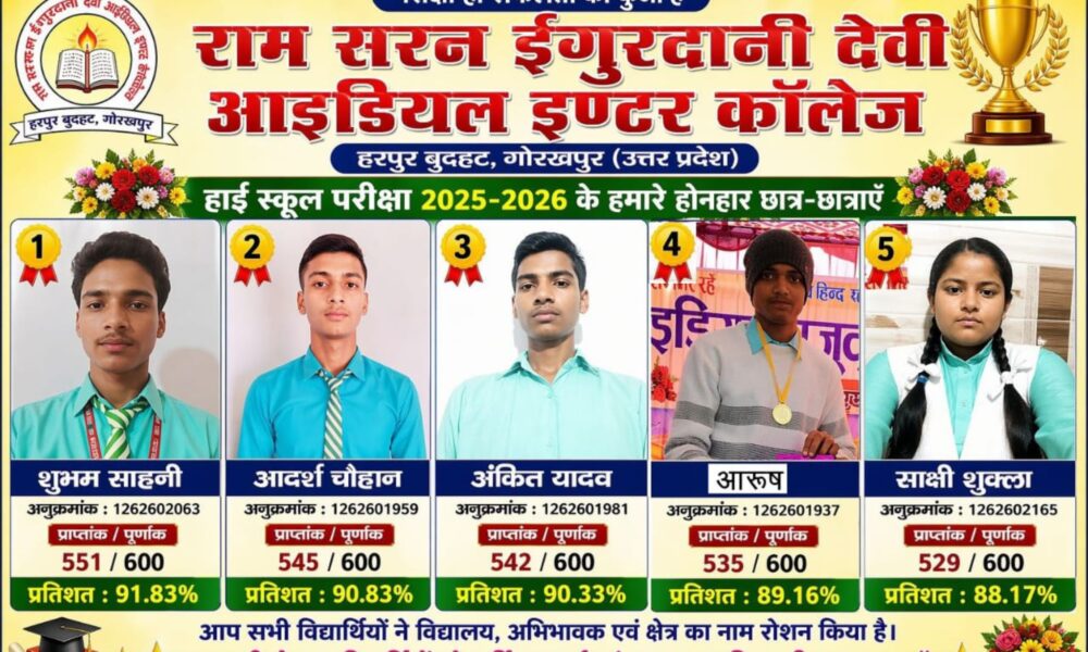 हरपुर बुदहट (गोरखपुर)। रामसरन इंगुरदानी देवी आइडियल इंटर कॉलेज के विद्यार्थियों ने परीक्षा में उत्कृष्ट प्रदर्शन कर विद्यालय और क्षेत्र का गौरव बढ़ाया है। कई छात्रों...