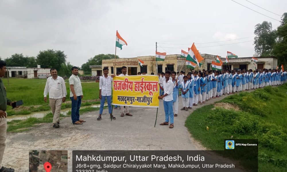 भीमापार (गाजीपुर)। “हर घर तिरंगा” अभियान के तहत मंगलवार को राजकीय हाईस्कूल मखदुमपुर में भव्य तिरंगा रैली का आयोजन किया गया। विद्यालय प्रांगण से प्रधानाचार्य रविन्द्र...