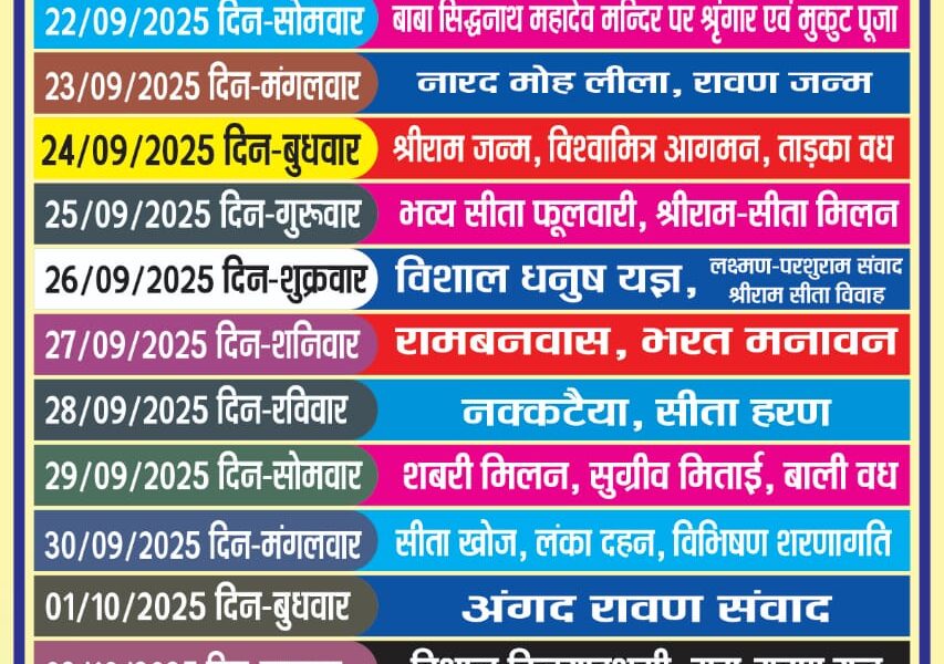 गाजीपुर। सिधौना क्षेत्र की प्रसिद्ध श्री आदर्श रामलीला समिति सिधौना ने इस वर्ष की रामलीला की संपूर्ण अनुसूची घोषित कर दी है। धार्मिक आस्था और भक्ति...