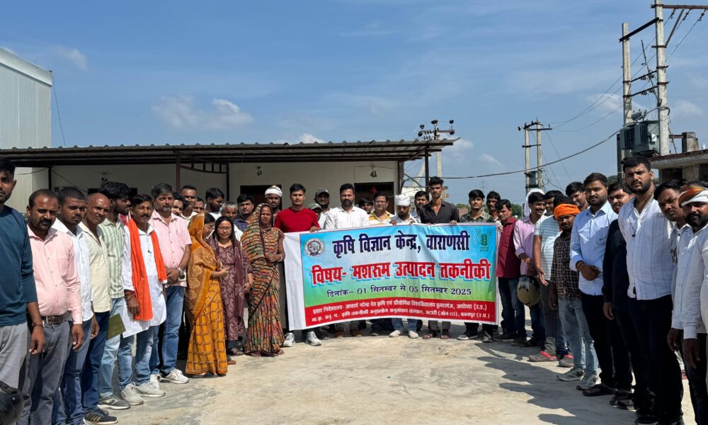 वाराणसी। कृषि विज्ञान केंद्र, कल्लीपुर, वाराणसी द्वारा आयोजित “मशरूम उत्पादन तकनीकी” विषयक पाँच दिवसीय प्रशिक्षण कार्यक्रम के तीसरे दिन बुधवार को किसानों का प्रक्षेत्र भ्रमण कराया...