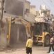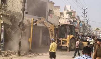 आग पर काबू पाने के लिए बुलडोजर का सहारा वाराणसी। पंचकोशी चौराहे के पास स्थित एक दोना-पत्तल की दुकान में बीती रात भीषण आग लगने से...