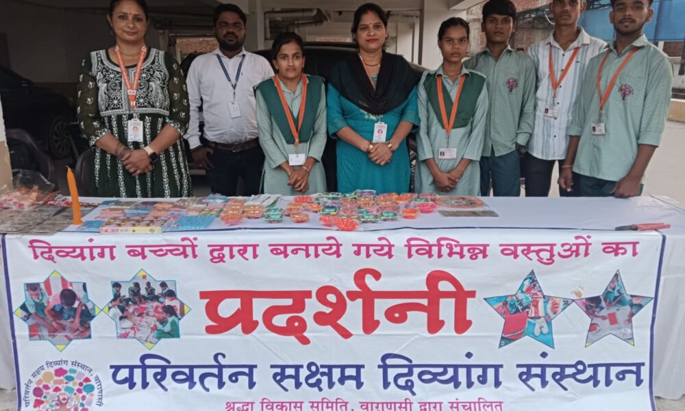 रुद्रा गंजेस सोसाइटी में लगी विशेष प्रदर्शनी वाराणसी। परिवर्तन सक्षम दिव्यांग संस्थान, बच्छाँव (वाराणसी) के बच्चों द्वारा हस्त-निर्मित मोमबत्तियों, कलात्मक डिज़ाइनर दीयों और स्वनिर्मित खड़े गरम...