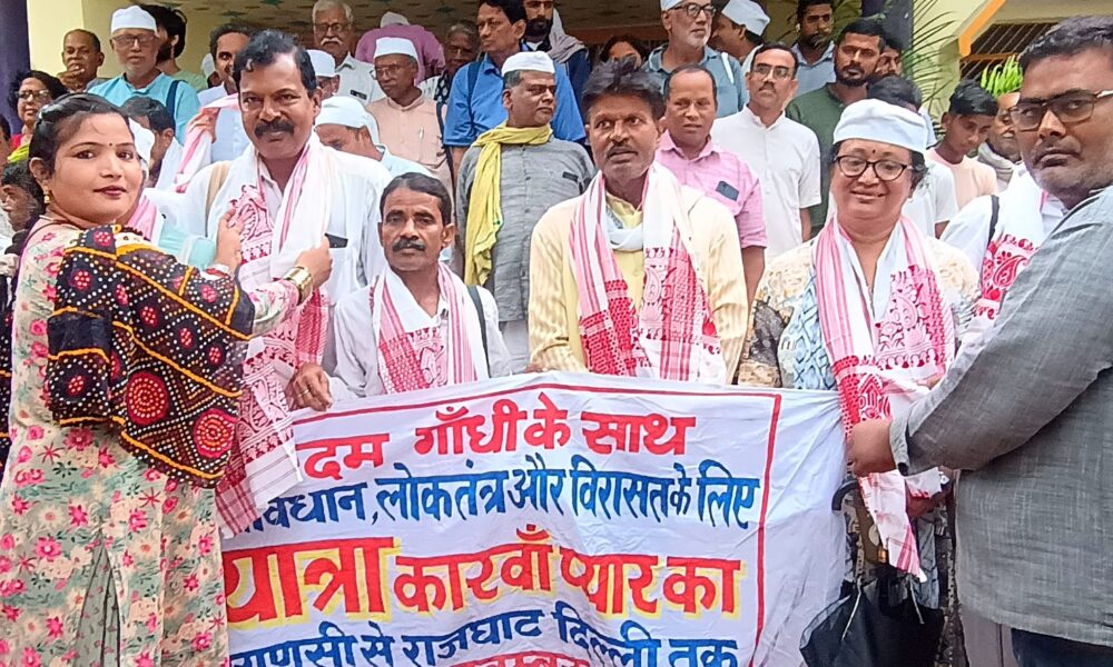 बारिश के बावजूद भीगते हुए आगे बढ़ते रहे पदयात्री वाराणसी (मिर्जामुराद)। राजघाट वाराणसी से राजघाट दिल्ली तक “एक कदम गांधी के साथ” 56 दिवसीय पदयात्रा के...